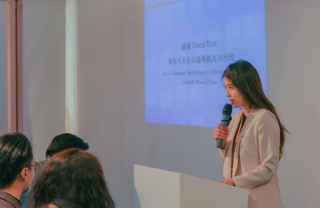 本次展览的策展人之一、加拿大木业市场传讯高级经理薛迪(Dora Xue)女士,介绍了此次展览的源起,并为嘉宾讲述了作为人类历史、文化、艺术、工学与自然结晶的木构建筑与自然之间关系的故事。